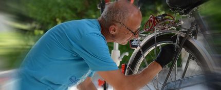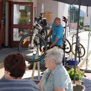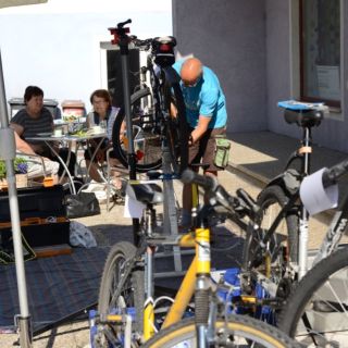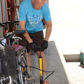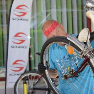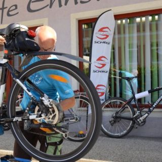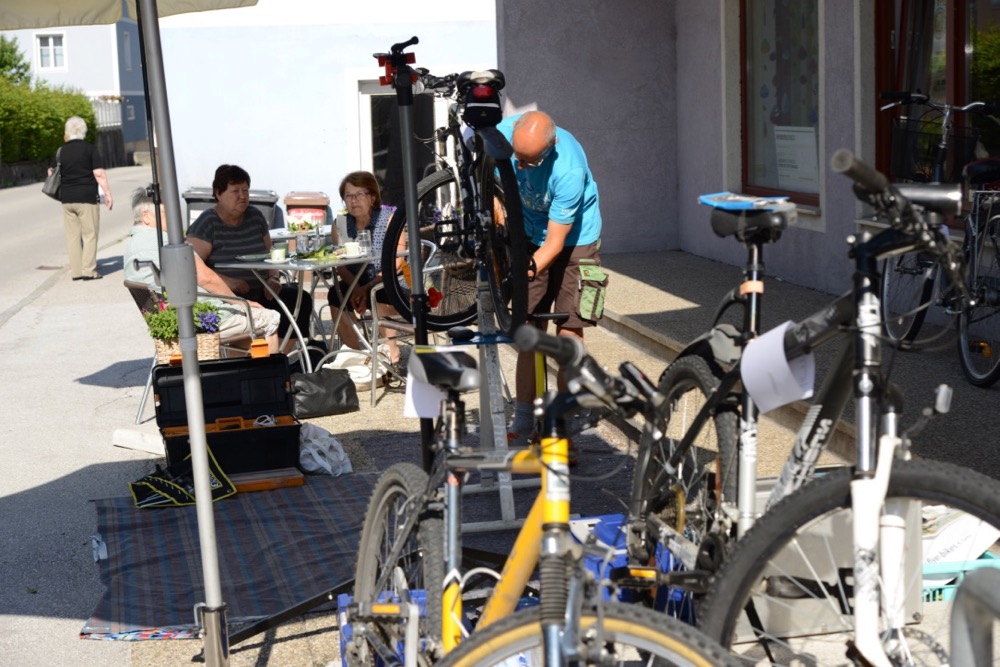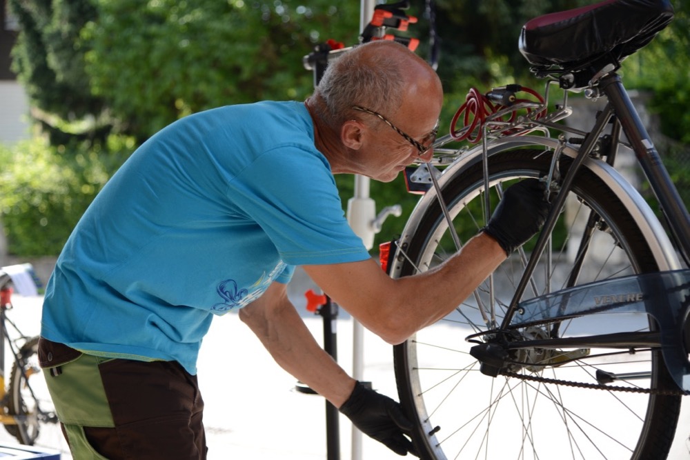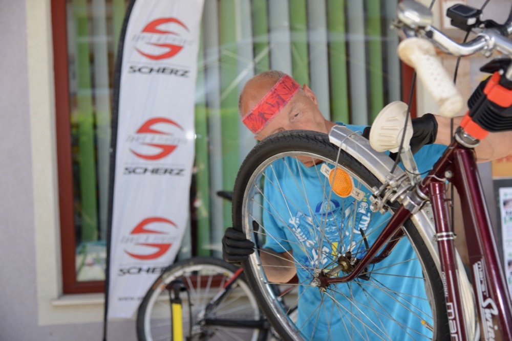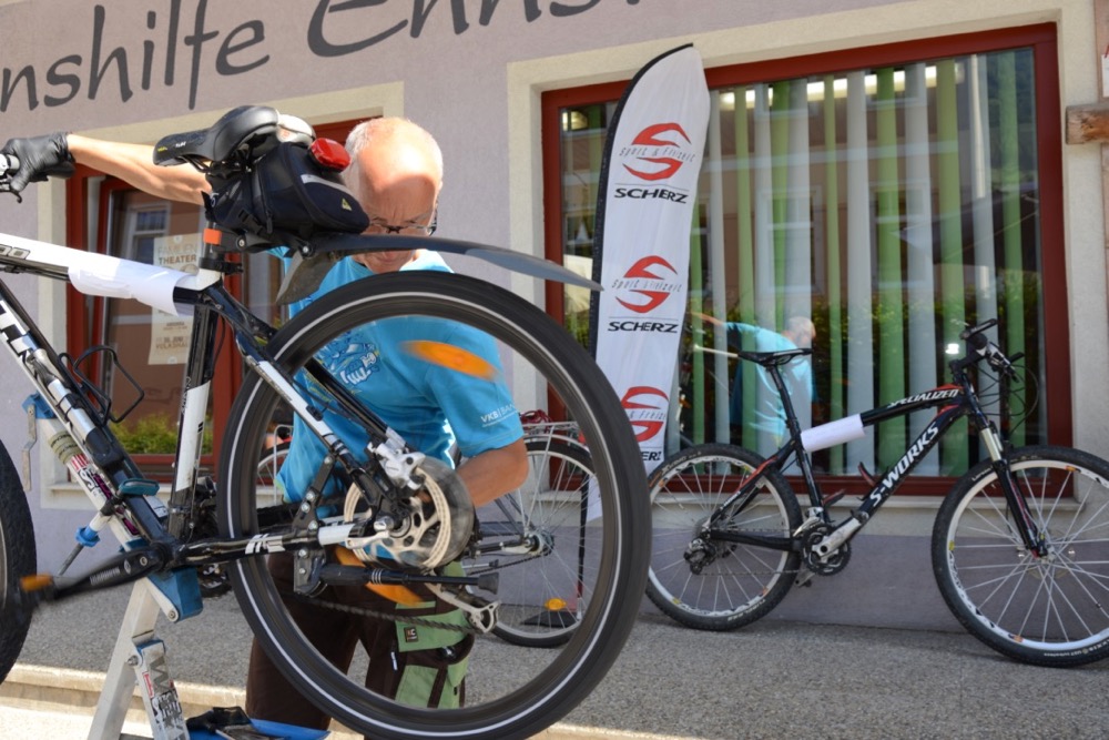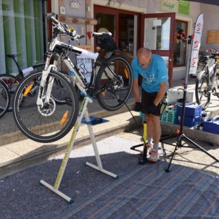 Für das professionelle Service sorgte Franz Schachner – ein Rad-Profi sozusagen – von Sport Scherz in Wörschach, der von der defekten Lichtanlage bis zur Einstellung der Gangschaltung die Arbeit mit Fachkenntnis, flott und kostengünstig erledigte. „Am wichtigsten ist“, so Schachner, „dass der Reifendruck passt. Das macht unheimlich viel aus, um mit dem Rad gut voranzukommen“. Und so pumpte Franz Schachner auch fleißig Luft in die Pneus.