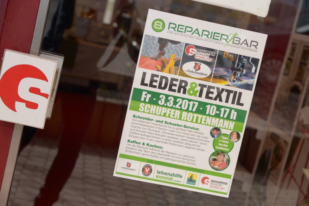 „Unsere Reparier·Bar“ ist eine Initiative, die uns allen sehr viel Spaß macht“, so Sieglinde Riedl, Leiterin des Standortes Rottenmann der Lebenshilfe Ennstal. Die Reparier·Bar wird von einer kleinen, feinen Gruppe an Partnern alle zwei bis drei Monate mit verschiedenen Schwerpunkten veranstaltet. Zu dieser innovativen Gruppe gehören: Die Radlerei, das Schuhhaus Schupfer, Elektro Matlschweiger und Bergsport Vasold zusammen mit der Lebenshilfe Rottenmann. Die Hofschneiderei war am 3. März 2017 zum ersten Mal – aber sicher nicht zum letzten Mal – mit an Bord.