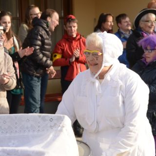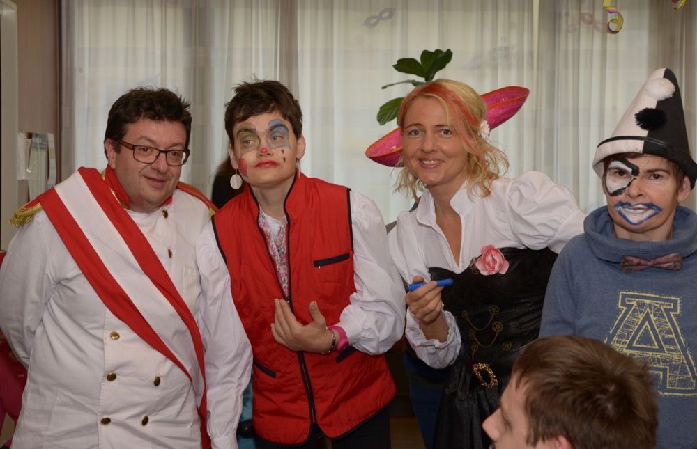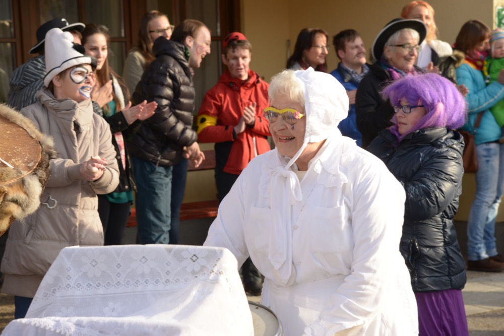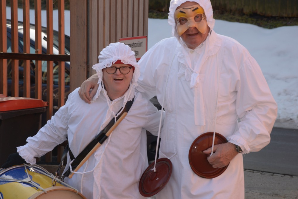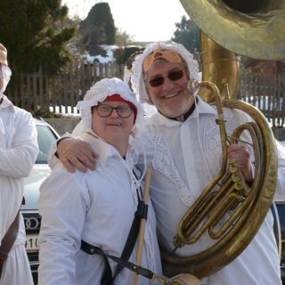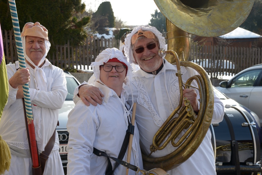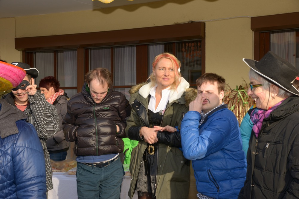 Um punkt 09:19 Uhr marschierten die Trommelweiber mit klingendem Spiel ein – schon sehnlichst erwartet von der "Mannschaft" des Standortes Liezen. Und wie jedesmal, war es auch am Faschingdienstag des Jahres 2016 ein herzliches Aufeinandertreffen. Ganz besonders auch deshalb, weil Walter Struckl, der am Standort Liezen arbeitet und lebt, ein aktives Mitglied der "Trommelweiber zu Liezen" ist. Voll adjustiert hat er schon auf seinen Freund, Bürgermeister Rudi Hakel, gewartet, damit er mit ihm und den Trommelweibern zu den weiteren Stationen (die Lebenshilfe war die dritte von insgesamt 21 Stationen) ziehen kann. Nach einer kleinen, feinen Bewirtung durch das "vabene"-Team zogen die Trommelweiber weiter – und Walter marschierte mit strahlendem Lächeln mit.