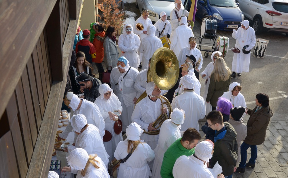 Es ist eine liebe Tradition, dass die "Trommelweiber zu Liezen" am Faschingdienstag dem Standort Liezen in der Salzstraße 24 einen Besuch abstatten.