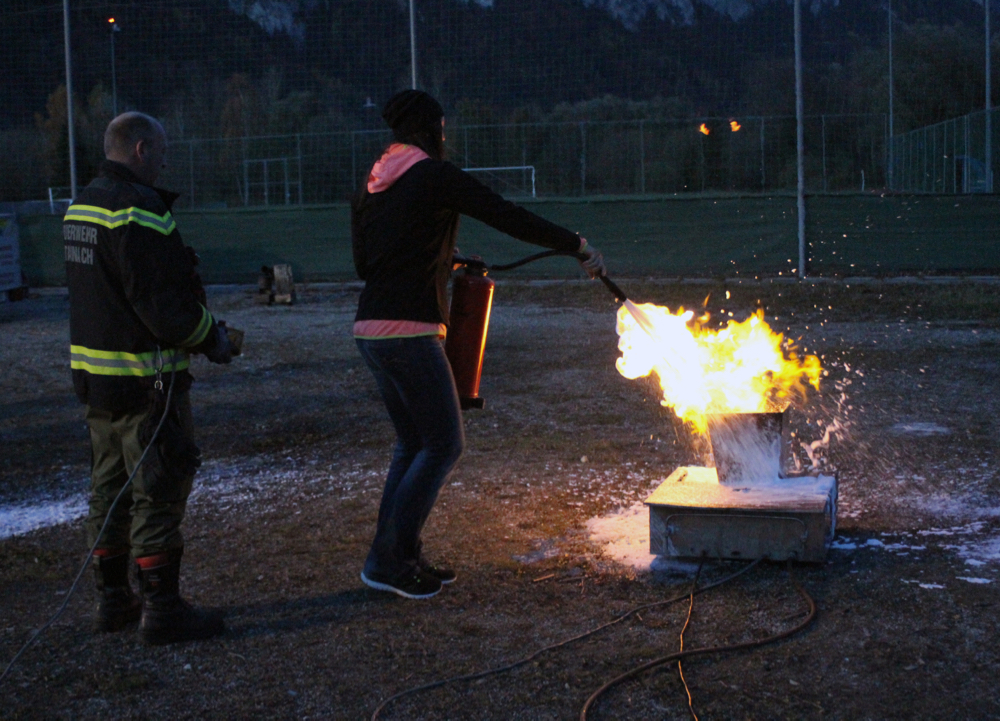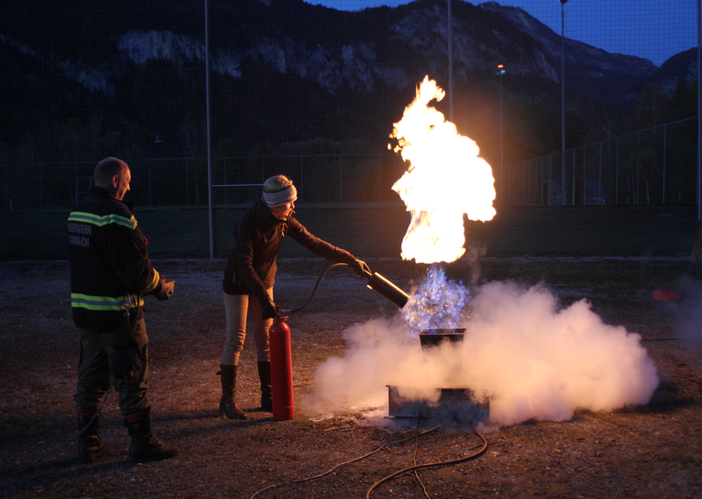 Im Mittelpunkt stand der richtige Einsatz und Umgang mit verschiedenen Löschmitteln. Zu Beginn wurde in der Theorie über die Entstehung eines Brandes, die verschiedenen Brandklassen und die dazu verwendbaren Löschmittel aufgeklärt. Im Anschluss konnte die Theorie in die Praxis umgesetzt und das Löschen unterschiedlichster Brandarten geübt werden.