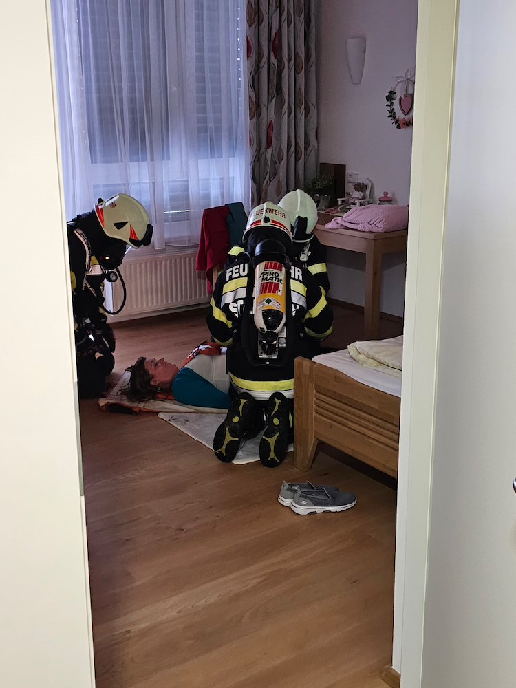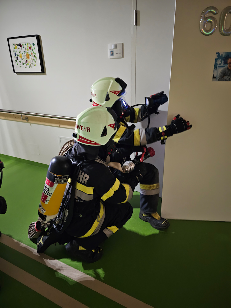 Für die Kundinnen und Kunden des Wohnhauses war es aufregend, Teil dieser Übung zu sein – mit dem pädagogischen Hintergrund, für einen wirklichen Notfall gewappnet zu sein und Ängste abzubauen.