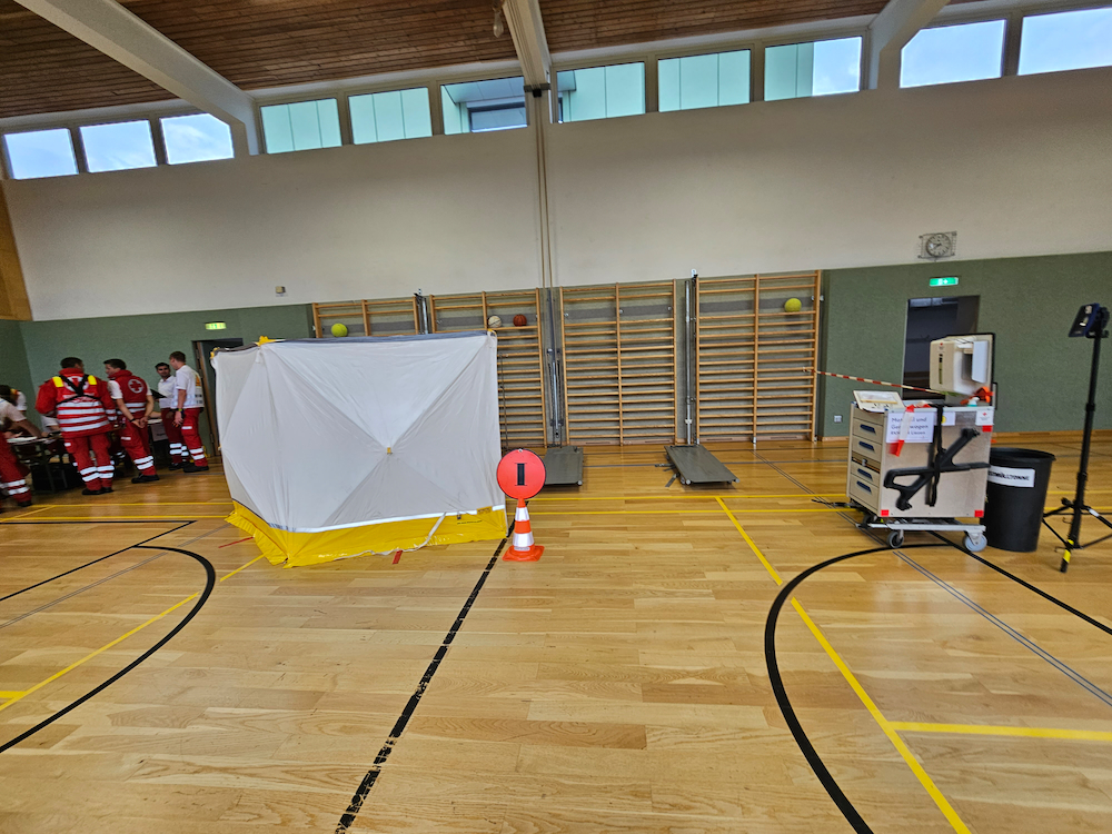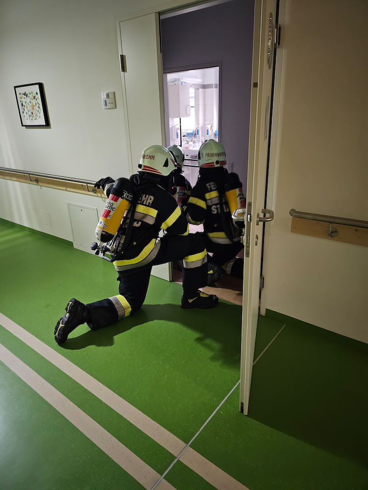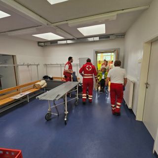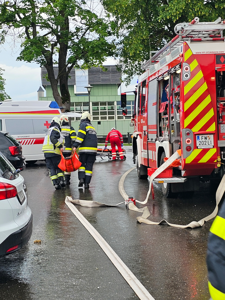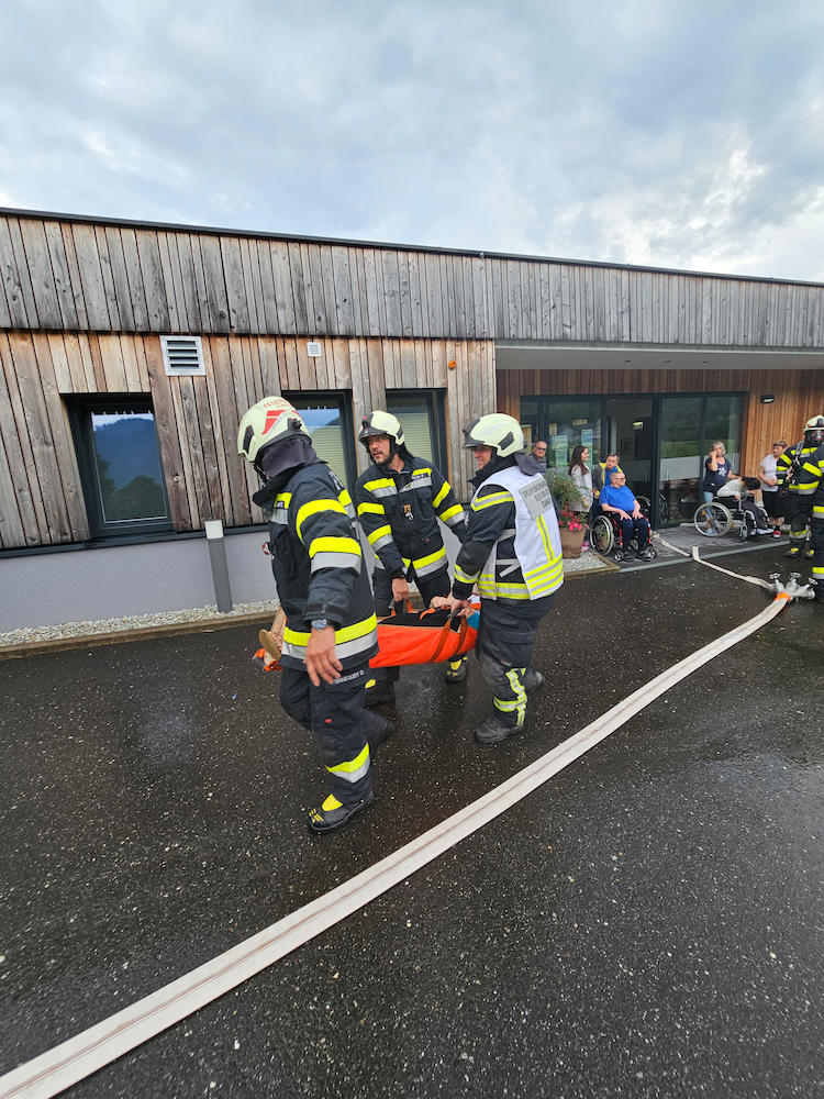 Schauplatz der Übung war unter anderem das Wohnhaus Stainach der Lebenshilfe Ennstal, aus dem die Bewohnerinnen und Bewohner gerettet und mittels Rettungswagen in die Notunterkunft im Turnsaal des BRG Stainach evakuiert wurden.