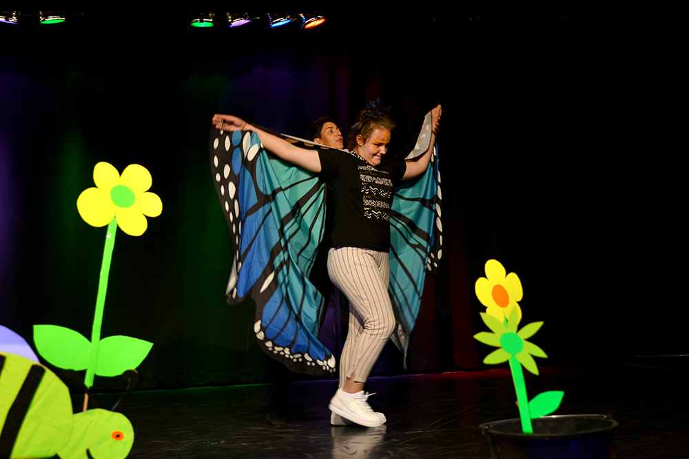 Unter Mitwirkung von Kundinnen und Kunden, die im Rahmen der Mobilen Dienste der Lebenshilfe Ennstal und der Flexiblen Hilfen Liezen betreut werden und in Kooperation mit dem Städtischen Kindergarten Liezen und der Fachschule für Sozialberufe des Bildungszentrums Nord in Rottenmann wurde im gutbesuchten Großen Saal des Liezener Kulturhauses ein kurzweiliges, abwechslungsreiches Programm präsentiert – mit Zauberkunststücken, Liedern, einem Gedicht, einem Schwarzlichttheater und natürlich der szenischen Aufführung des Kinderbuchklassikers „Die kleine Raupe Nimmersatt“ von Eric Carle.