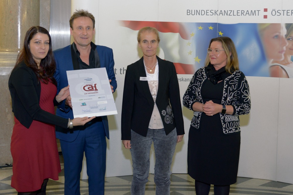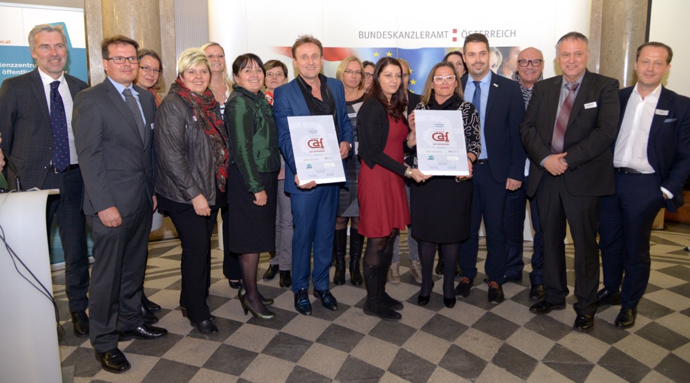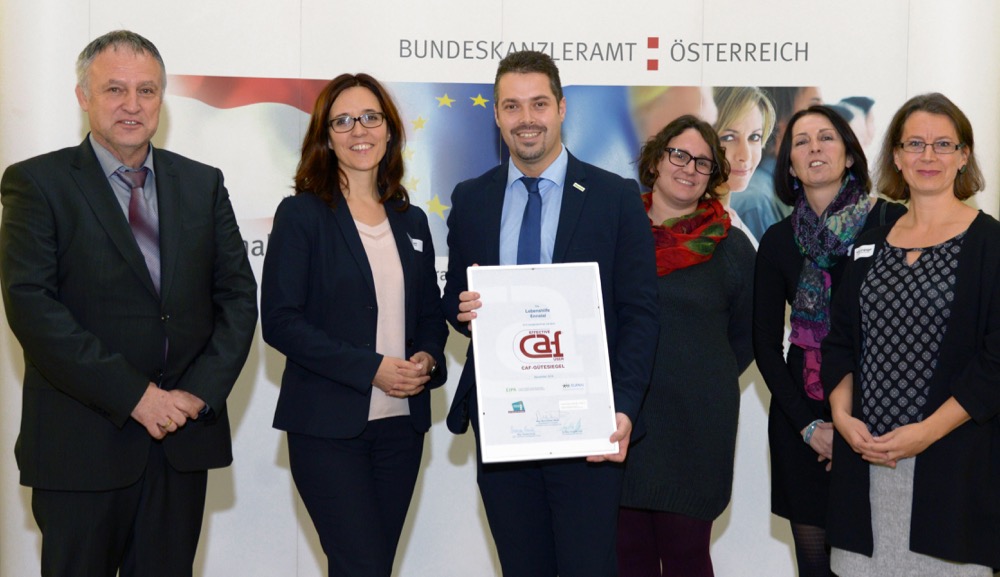 Mit dem CAF-Gütesiegel wurden ausgezeichnet: die Sicherheitsakademie des Bundesministeriums für Inneres, der Landesrechnungshof Steiermark (vertreten durch den Steiermärkischen Landesrechnungshofdirektor Mag. Heinz Drobesch) sowie die Lebenshilfe·3, die durch die GeschäftsführerInnen Karin Prethaler (Lebenshilfe Bruck an der Mur), Gertrude Rieger (Lebenshilfe Enntal) und Mag. Ferenc Ullmann (Lebenshilfe Leoben) vertreten wurden.
