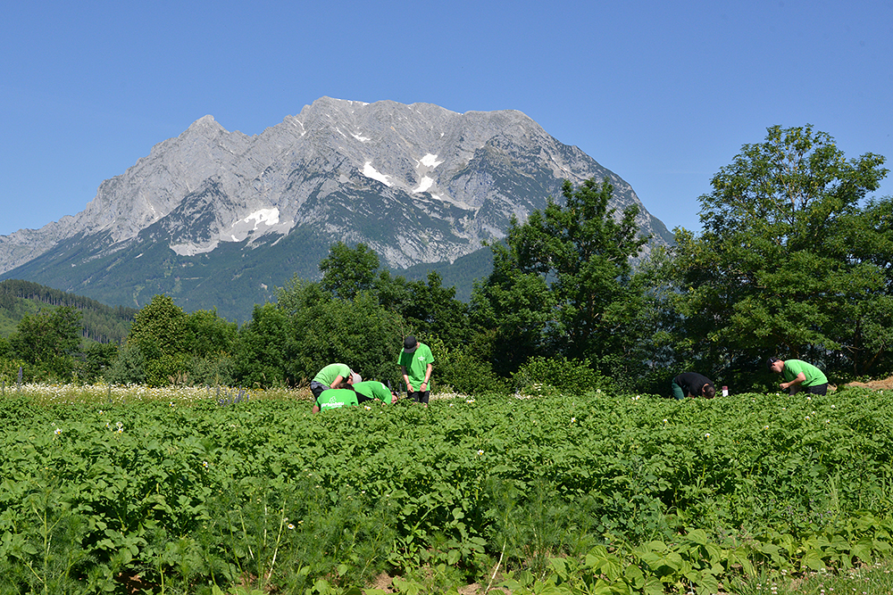 Auf dem Gartenbau-Areal in Raumberg-Gumpenstein blüht und gedeiht alles prächtig. Aktuell widmet sich das Team ganz besonders der Pflege der Erfäpfel. Und weil hier alles bio ist, werden Schädlinge wie der Kartoffelkäfer natürlich von Hand entfernt, denn Insektenvernichtungsmittel haben im Gartenbau der Lebenshilfe nicht verloren.