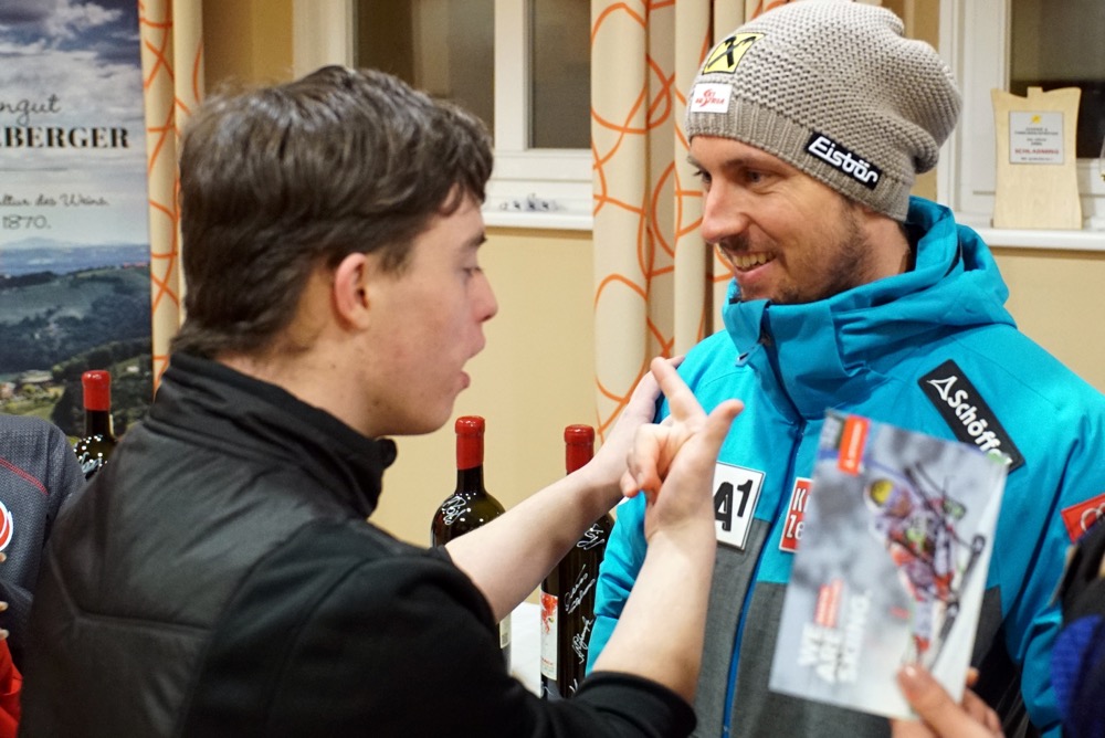 Dort haben sie unter anderem Marcel Hirscher (Bild), Felix Neureuther und Alexander Khoroschilow getroffen. Herbert Pichler: „Für mich war es faszinierend und berührend zugleich, wie natürlich und unkompliziert die weltbesten Schifahrer mit dem Thema Integration und Inklusion umgehen." Für Lukas Duhs ging ein Traum in Erfüllung, mit Marcel Hirscher eines seiner großen sportlichen Vorbilder zu treffen.