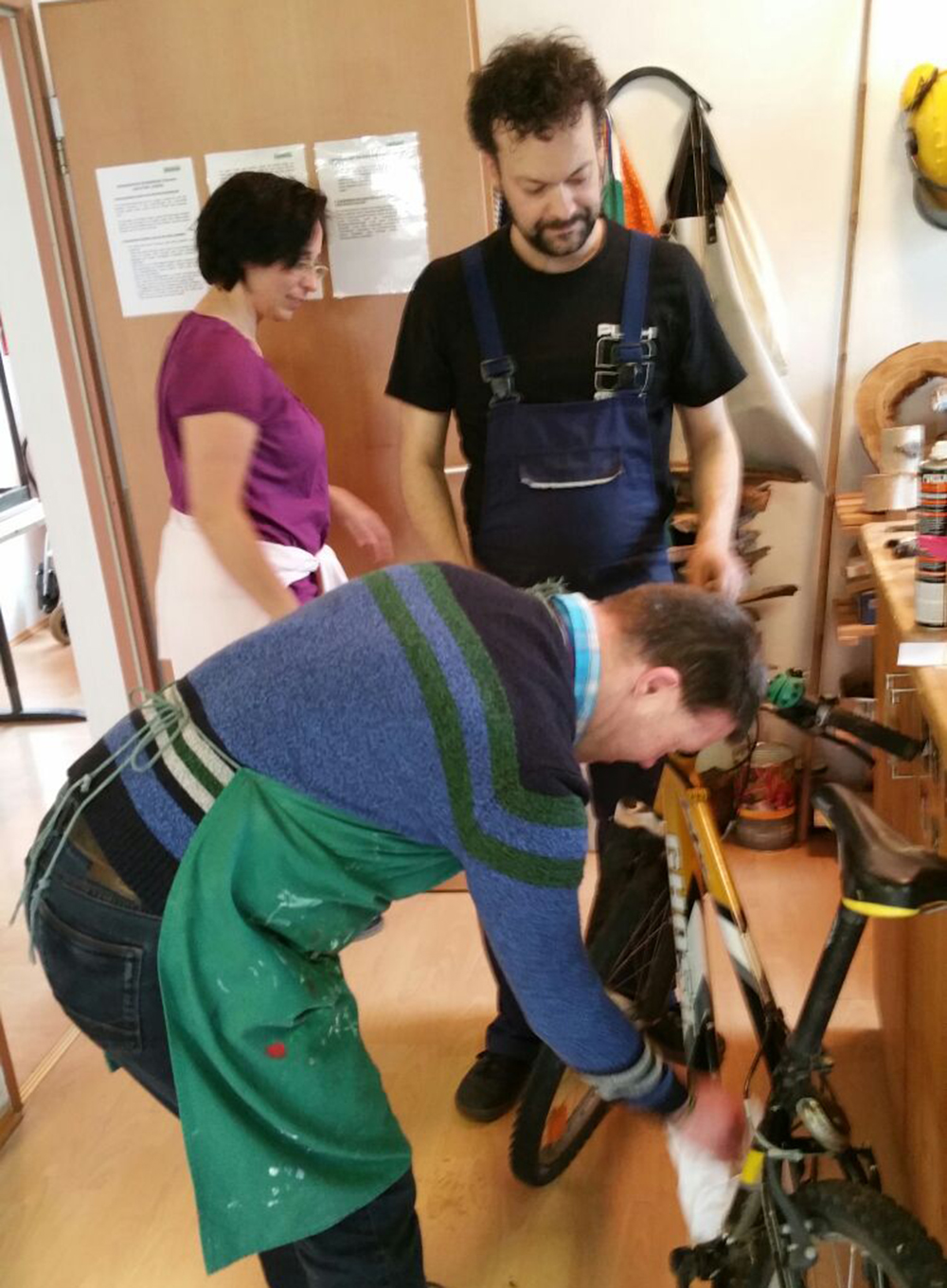 Die fachmännische Arbeit wurde von der Fahrradtechnik David Bernkopf („Die Radlerei“) durchgeführt: vom „Potschn picken“ bis zum Einstellen der Gangschaltung und Richten der Brems- oder Lichtanlage. Die Lebenshilfe-Mannschaft kredenzte allen Besucherinnen und Besuchern selbstgemachten Kuchen und Kaffee.