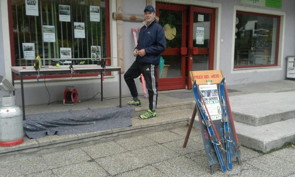 Der Kundenandrang war groß. Das Serviceteam mit Manfred Kargl, Christian Laszlo und Marco Schupfer hatte alle Hände voll zu tun, als es beispielsweise darum ging, die Beläge der Schier auszubessern oder die Kanten zu schleifen. Dazu kredenzte die Lebenshilfe Rottenmann selbstgemachten Kaffee und Kuchen, um die Wartezeit für die Kundinnen und Kunden ein wenig zu verkürzen.