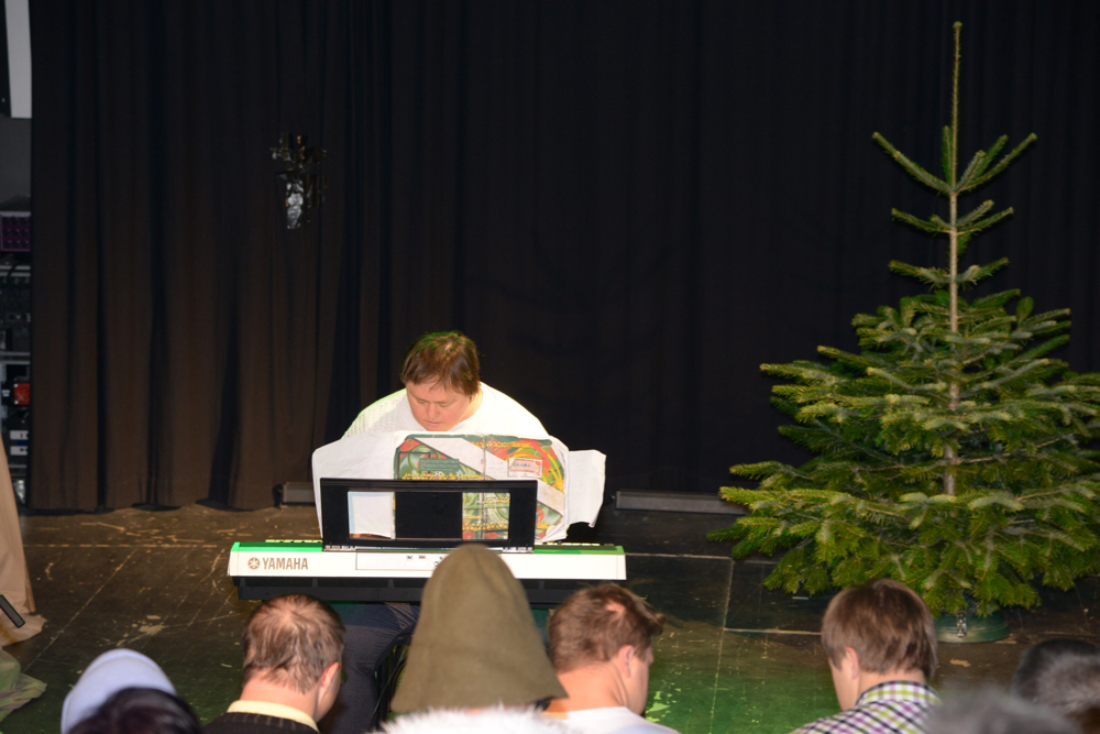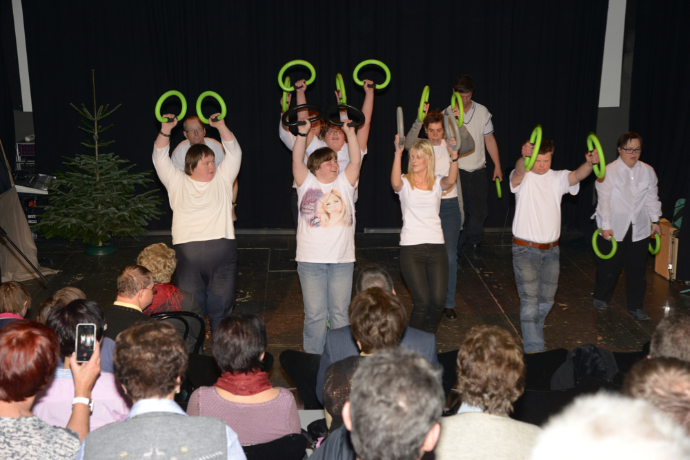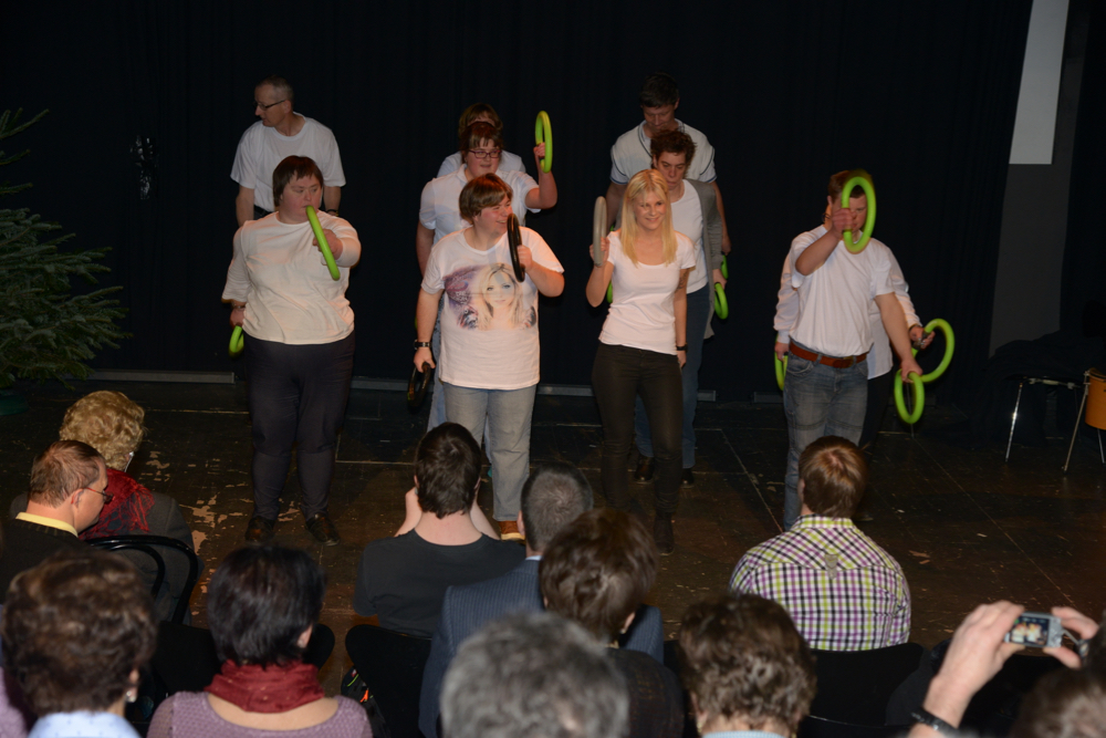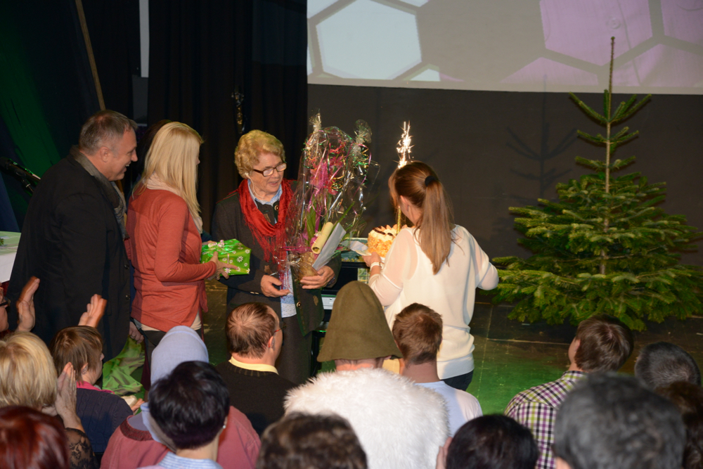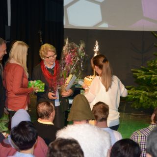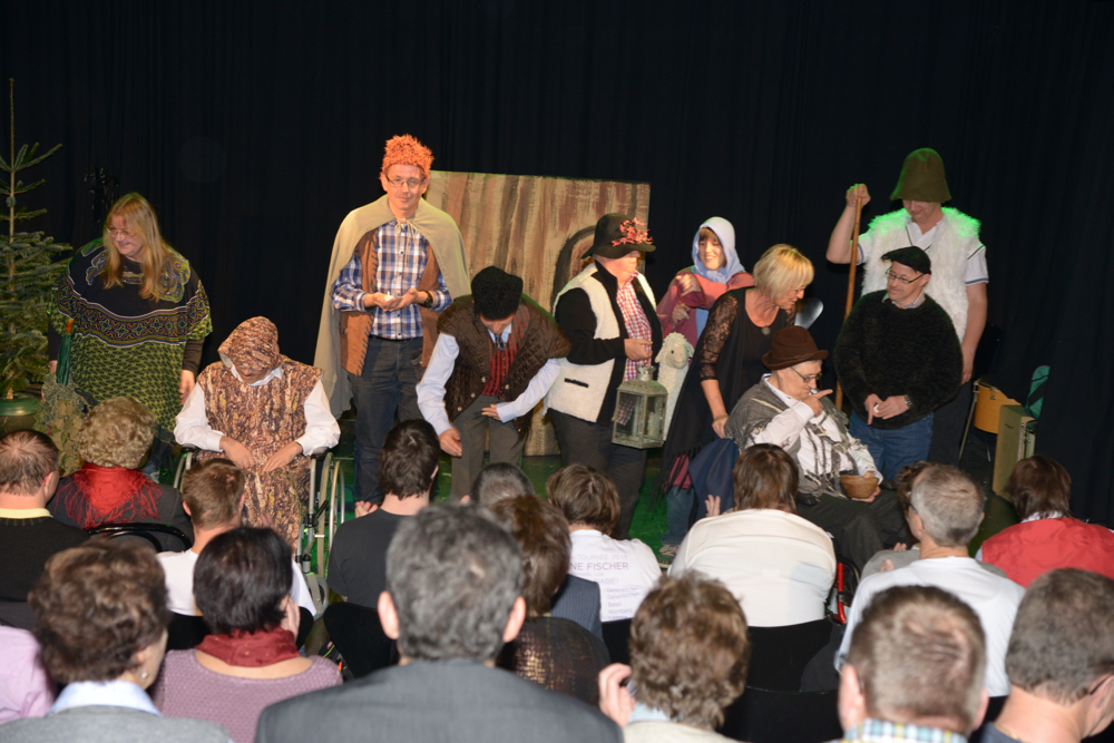 Silke Strallhofer eröffnete die Feier mit einem Weihnachtslied. Standortleiterin Edith Pfeifer führte durch das Programm, Obmann Michael Fasching B.A. begrüßte die vielen Eltern, Angehörigen und Freunde der Lebenshilfe Stainach im vollbesetzten CCW. Gleich zu Beginn gab es einen ganz erfreulichen Anlass: Stefanie Seiringer, die seit 1994 in der Lebenshilfe Ennstal in Stainach lebt und arbeitet, feierte ihren 80. Geburtstag, zu dem herzlichst gratuliert wurde. Mit Elias Duhs ging es weiter, er spielte zwei Stücke auf seiner Steirischen Harmonika. Michael Kronsteiner präsentierte in einem kurzen Film sein "Malprojekt in der Grimmingwerkstätte", das die Abschlussarbeit zu seinem Fachsozialbetreuer-Lehrgang bildete. Die Jeux-dramatiques-Gruppe begeisterte mit einem Weihnachtsstück ebenso wie die Smoovy-Gruppe der Schulbuffets Stainach und Raumberg-Gumpenstein. Eine weitere Schauspielertruppe gab das Stück "Die vier Kerzen" zum Besten. Dann wurde gemeinsam musiziert bevor schließlich ein "Sockentheater" den Abschluss des "offiziellen Teils" der Weihnachtsfeier bildete. Im Anschluss wurden alle Anwesenden zu einem gemütlichen Buffet in die Grimmingwerkstätte eingeladen, das von der Benissimo Buffet-Catering GmbH kredenzt wurde. Ein herzliches Dankeschön an CCW-Geschäftsführer Mag. Helmut Günther und sein Team für die wunderbare Unterstützung der Feier.