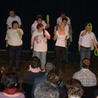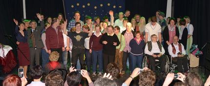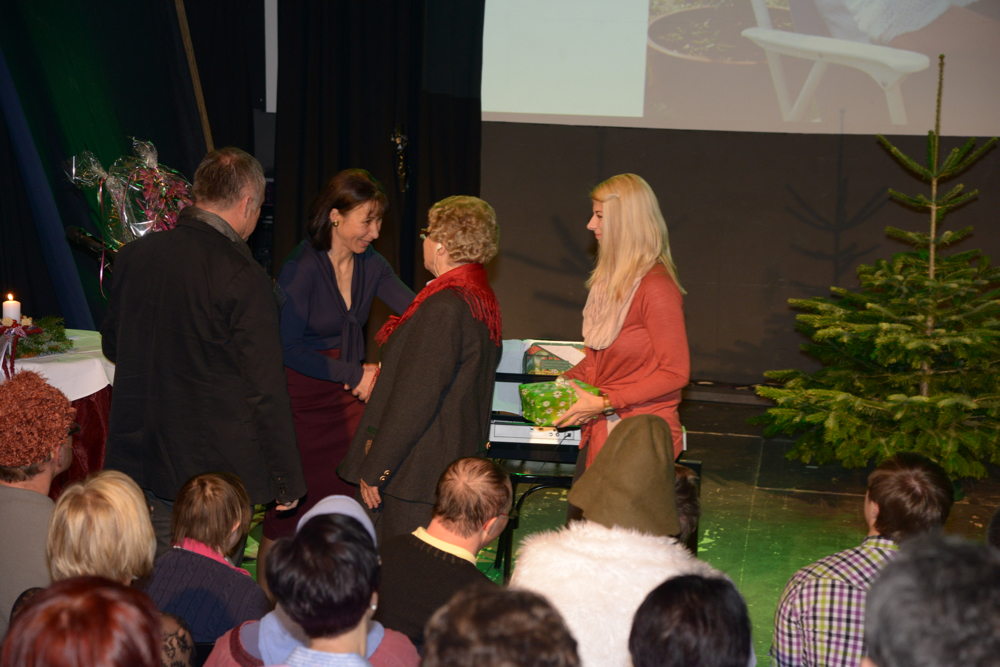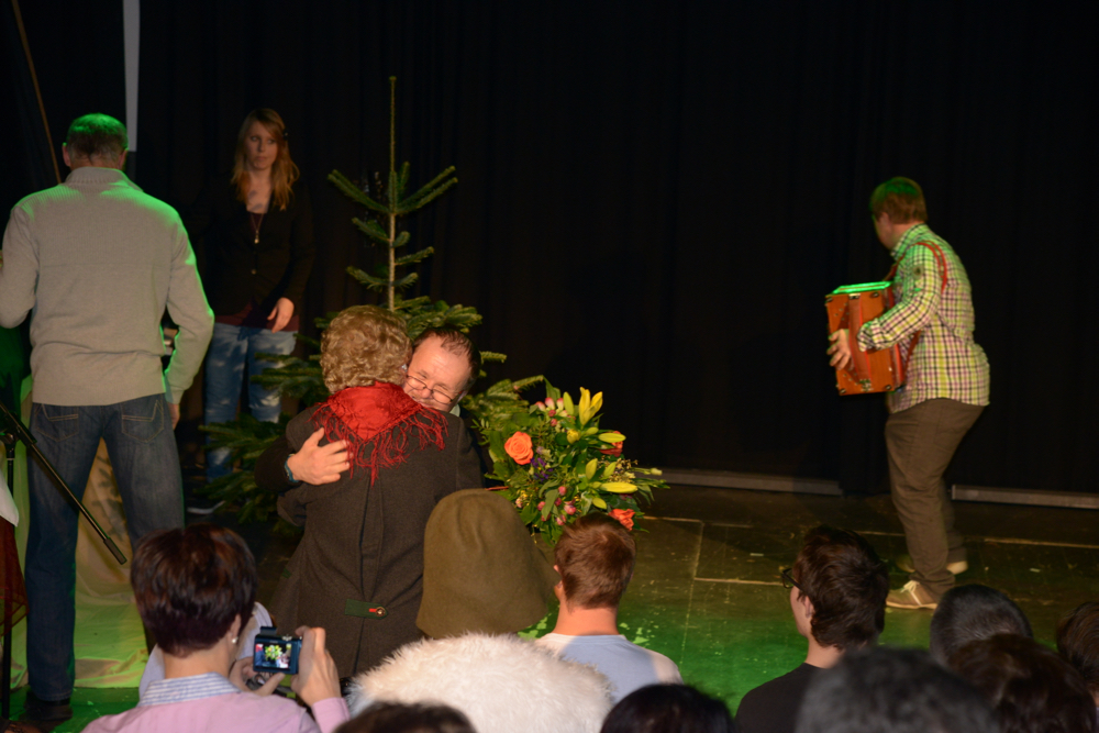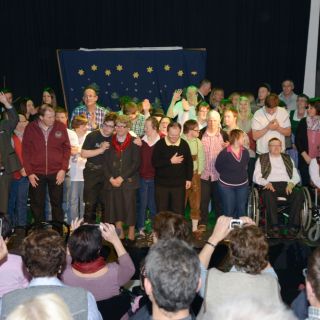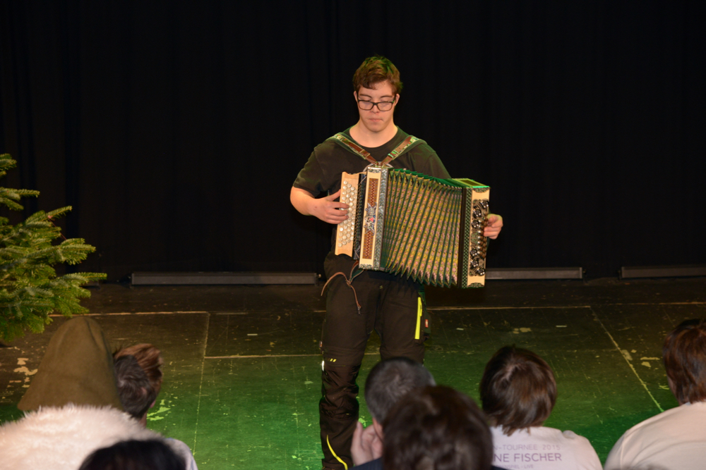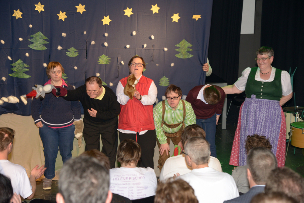 Silke Strallhofer eröffnete die Feier mit einem Weihnachtslied. Standortleiterin Edith Pfeifer führte durch das Programm, Obmann Michael Fasching B.A. begrüßte die vielen Eltern, Angehörigen und Freunde der Lebenshilfe Stainach im vollbesetzten CCW. Gleich zu Beginn gab es einen ganz erfreulichen Anlass: Stefanie Seiringer, die seit 1994 in der Lebenshilfe Ennstal in Stainach lebt und arbeitet, feierte ihren 80. Geburtstag, zu dem herzlichst gratuliert wurde. Mit Elias Duhs ging es weiter, er spielte zwei Stücke auf seiner Steirischen Harmonika. Michael Kronsteiner präsentierte in einem kurzen Film sein "Malprojekt in der Grimmingwerkstätte", das die Abschlussarbeit zu seinem Fachsozialbetreuer-Lehrgang bildete. Die Jeux-dramatiques-Gruppe begeisterte mit einem Weihnachtsstück ebenso wie die Smoovy-Gruppe der Schulbuffets Stainach und Raumberg-Gumpenstein. Eine weitere Schauspielertruppe gab das Stück "Die vier Kerzen" zum Besten. Dann wurde gemeinsam musiziert bevor schließlich ein "Sockentheater" den Abschluss des "offiziellen Teils" der Weihnachtsfeier bildete. Im Anschluss wurden alle Anwesenden zu einem gemütlichen Buffet in die Grimmingwerkstätte eingeladen, das von der Benissimo Buffet-Catering GmbH kredenzt wurde. Ein herzliches Dankeschön an CCW-Geschäftsführer Mag. Helmut Günther und sein Team für die wunderbare Unterstützung der Feier.