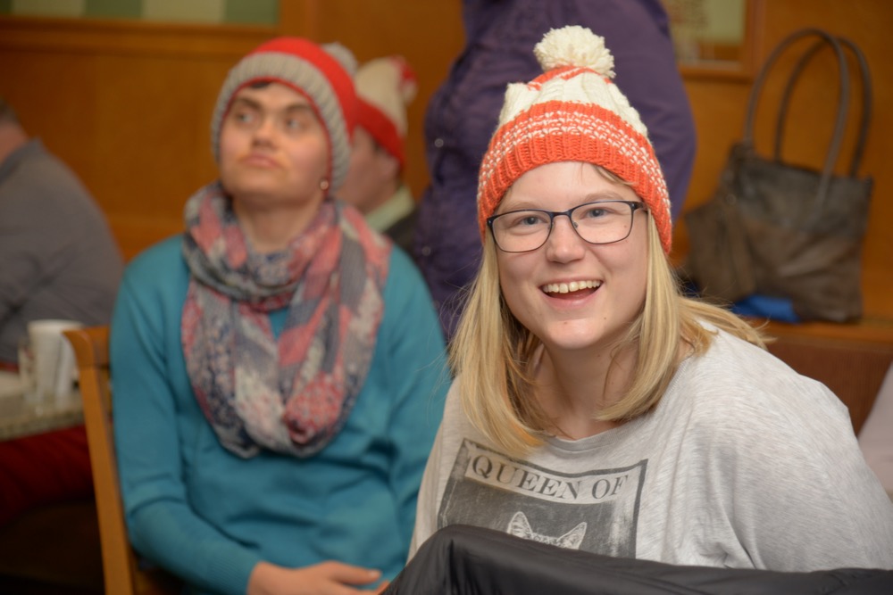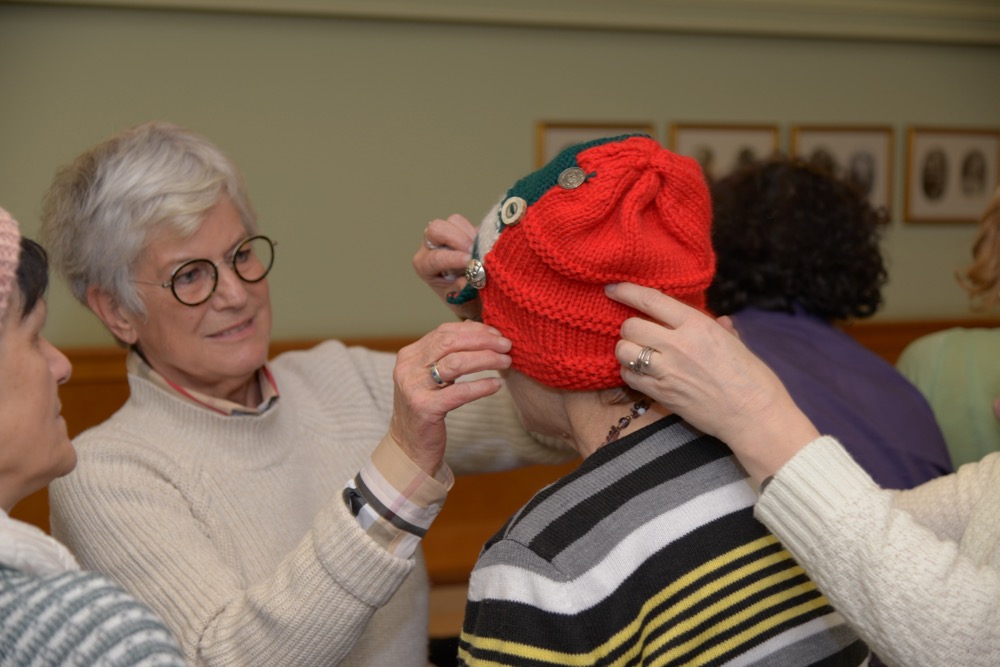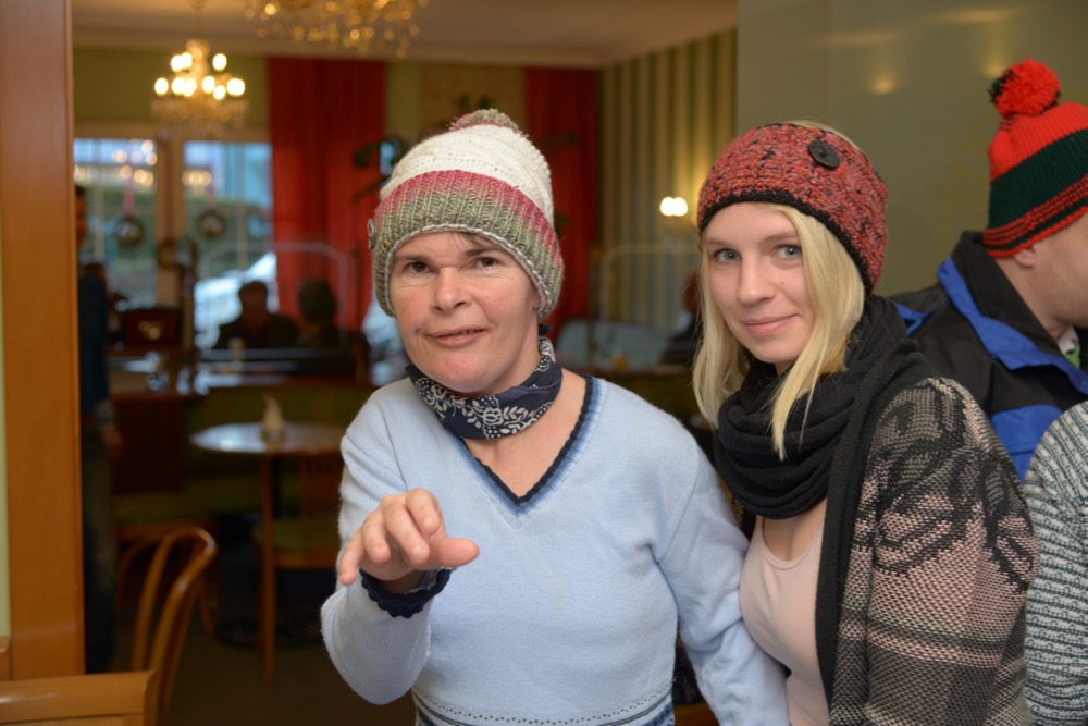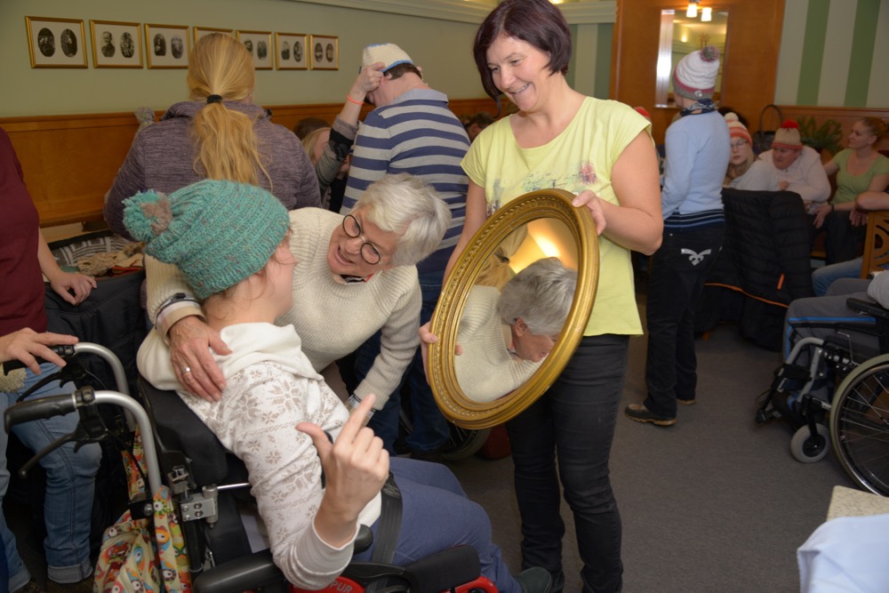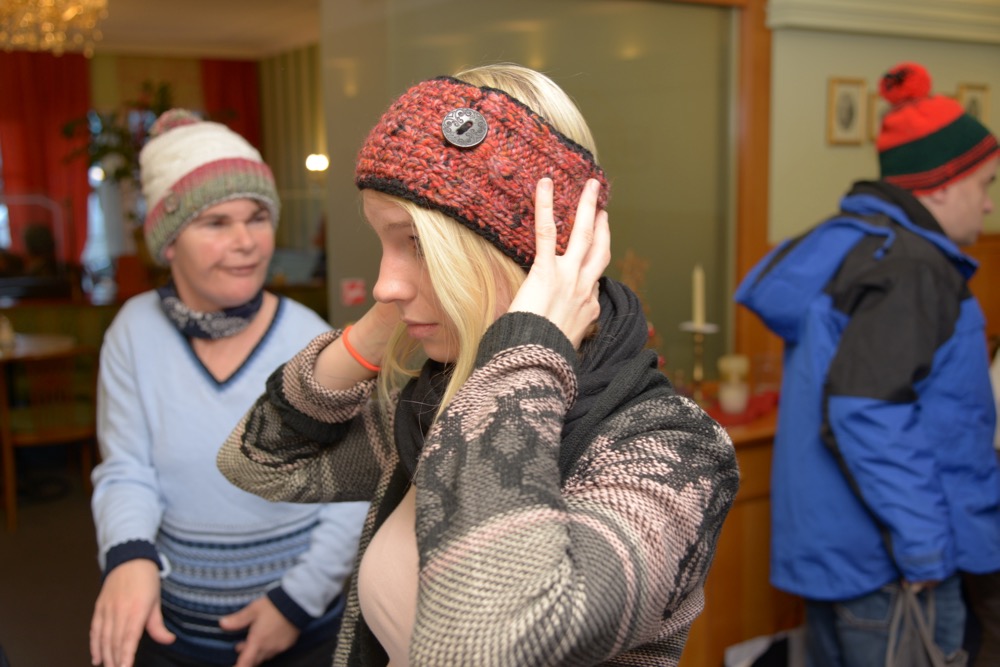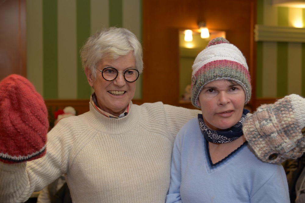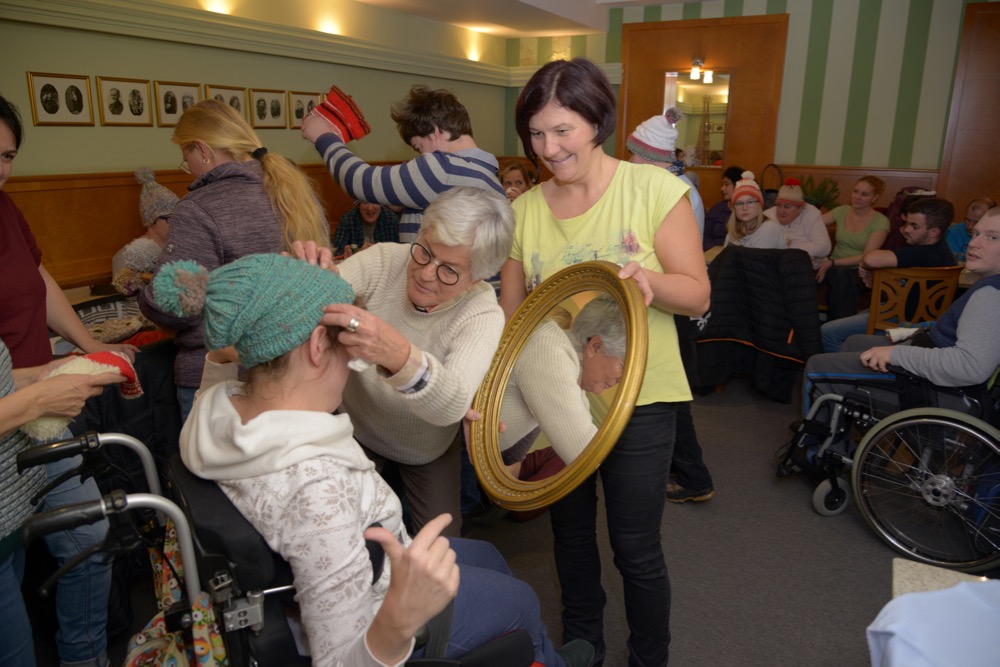 Wochenlang saß die leidenschaftliche Handarbeiterin über ihrem Strickzeug und fertigte bunte Hauben für Kundinnen und Kunden der Lebenshilfe Ennstal. „Schon während des Strickens war ich gespannt, wer sich wohl welche Haube aussuchen wird“, verriet Evi Dunkel bei der Haubenübergabe. Diese fand am Nikolaustag im Café Mitter in Liezen statt. Berge an Hauben und Stirnbändern türmten sich auf den Tischen des Liezener Traditionscafés. Zur großen Anprobe spendierte Heribert Mitter Punsch und Krapfen. Schlussendlich fand jeder die passende Kopfbedeckung – alles in allem: ein geselliger Nachmittag, sehr zur Freude der edlen Spenderin und der beschenkten Kundinnen und Kunden der Lebenshilfe Ennstal.